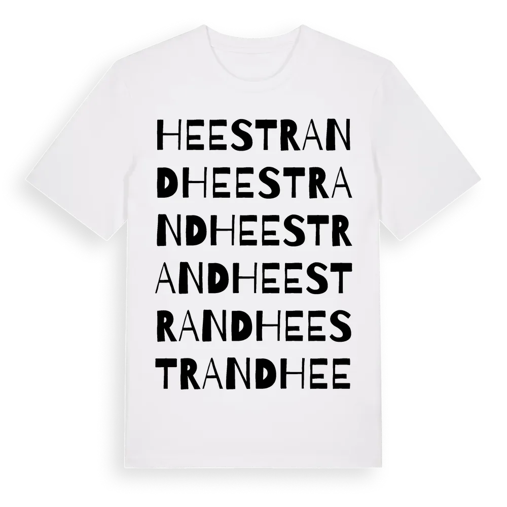 Heestrand ordlek t-shirt är inspirerad av byn Heestrand i Västra Götalands län, Sverige. Tröjan är designad för dig som har en speciell koppling till platsen – oavsett om du bor här, har rötterna här eller bara älskar Heestrand.