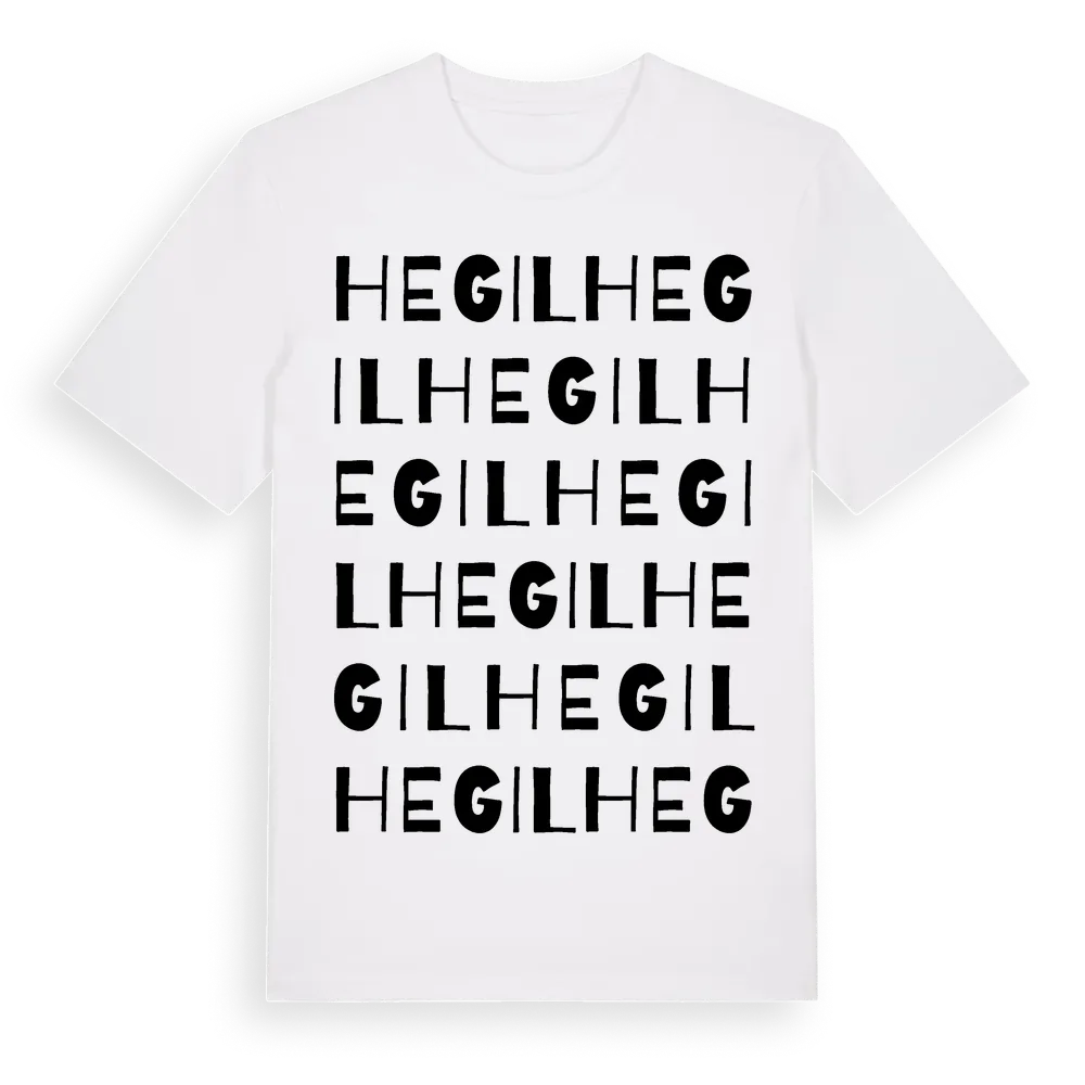 Hegil ordlek t-shirt är inspirerad av Hegil i Västra Götalands län, Sverige. Tröjan är designad för dig som har en speciell koppling till platsen – oavsett om du bor här, har rötterna här eller bara älskar Hegil.