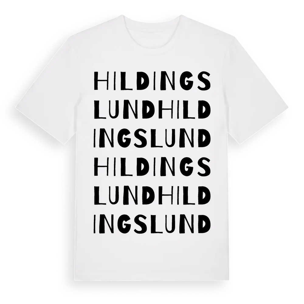 Hildingslund ordlek t-shirt är inspirerad av Hildingslund i Västra Götalands län, Sverige. Tröjan är designad för dig som har en speciell koppling till platsen – oavsett om du bor här, har rötterna här eller bara älskar Hildingslund.