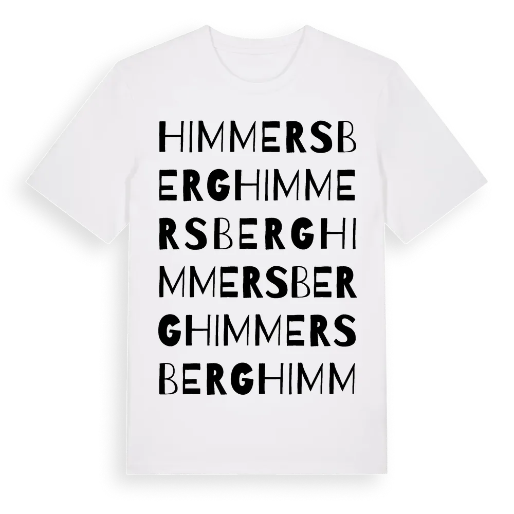 Himmersberg ordlek t-shirt är inspirerad av Himmersberg i Västra Götalands län, Sverige. Tröjan är designad för dig som har en speciell koppling till platsen – oavsett om du bor här, har rötterna här eller bara älskar Himmersberg.