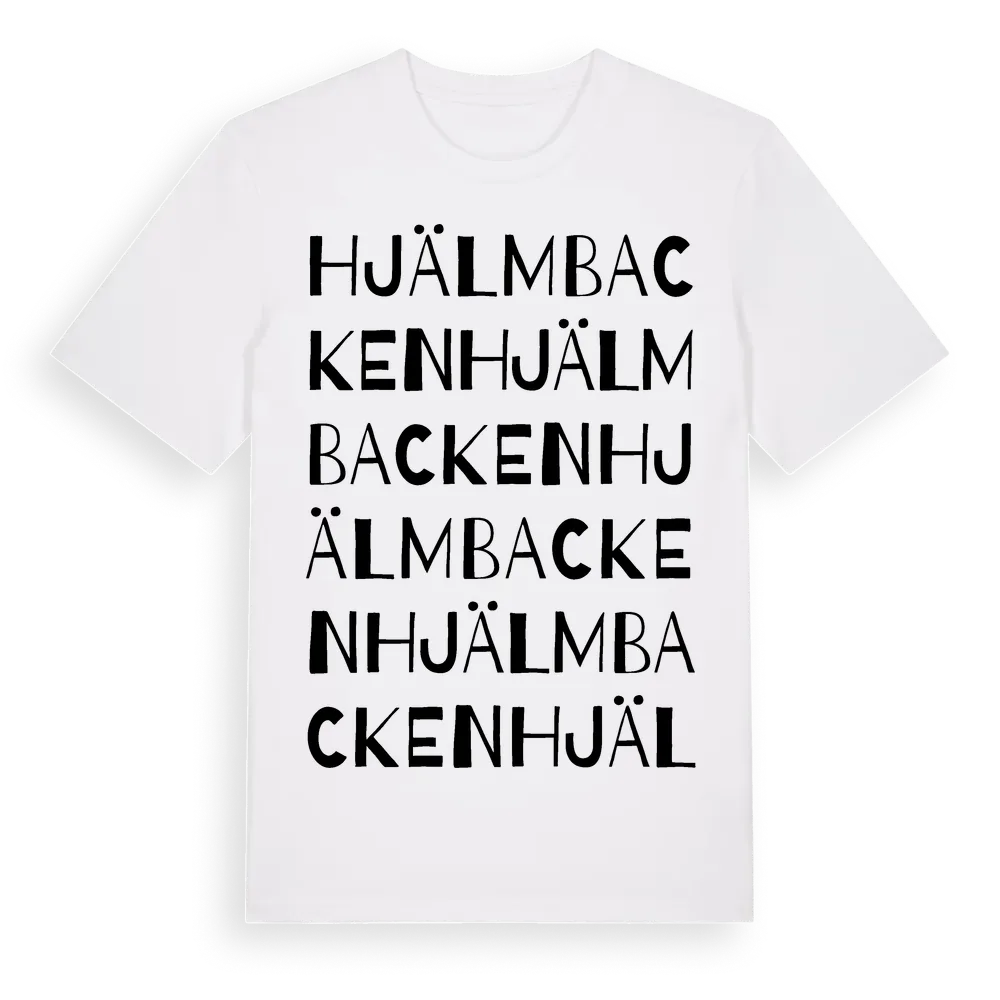 Hjälmbacken ordlek t-shirt är inspirerad av Hjälmbacken i Västra Götalands län, Sverige. Tröjan är designad för dig som har en speciell koppling till platsen – oavsett om du bor här, har rötterna här eller bara älskar Hjälmbacken.