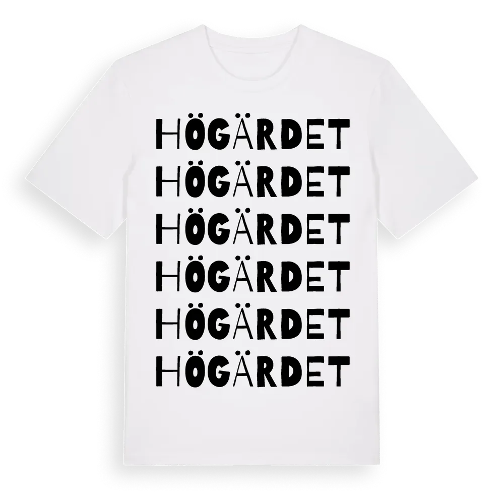 Högärdet ordlek t-shirt är inspirerad av byn Högärdet i Västra Götalands län, Sverige. Tröjan är designad för dig som har en speciell koppling till platsen – oavsett om du bor här, har rötterna här eller bara älskar Högärdet.