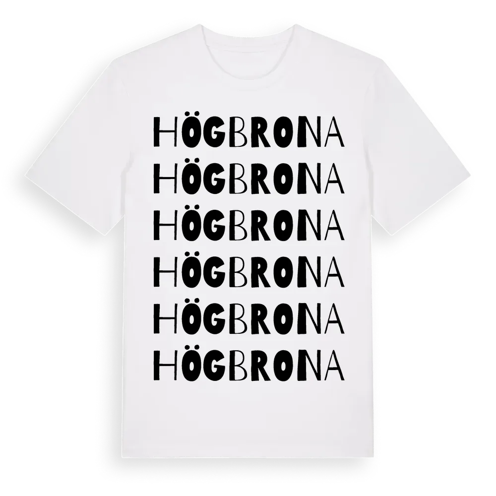 En ordlek byggd på Högbronas namn. Subtilt och klurig – ett motiv som bara de som verkligen känner platsen fullt ut förstår. Premium bomull, unisex – från Högbrona i Västra Götalands län.