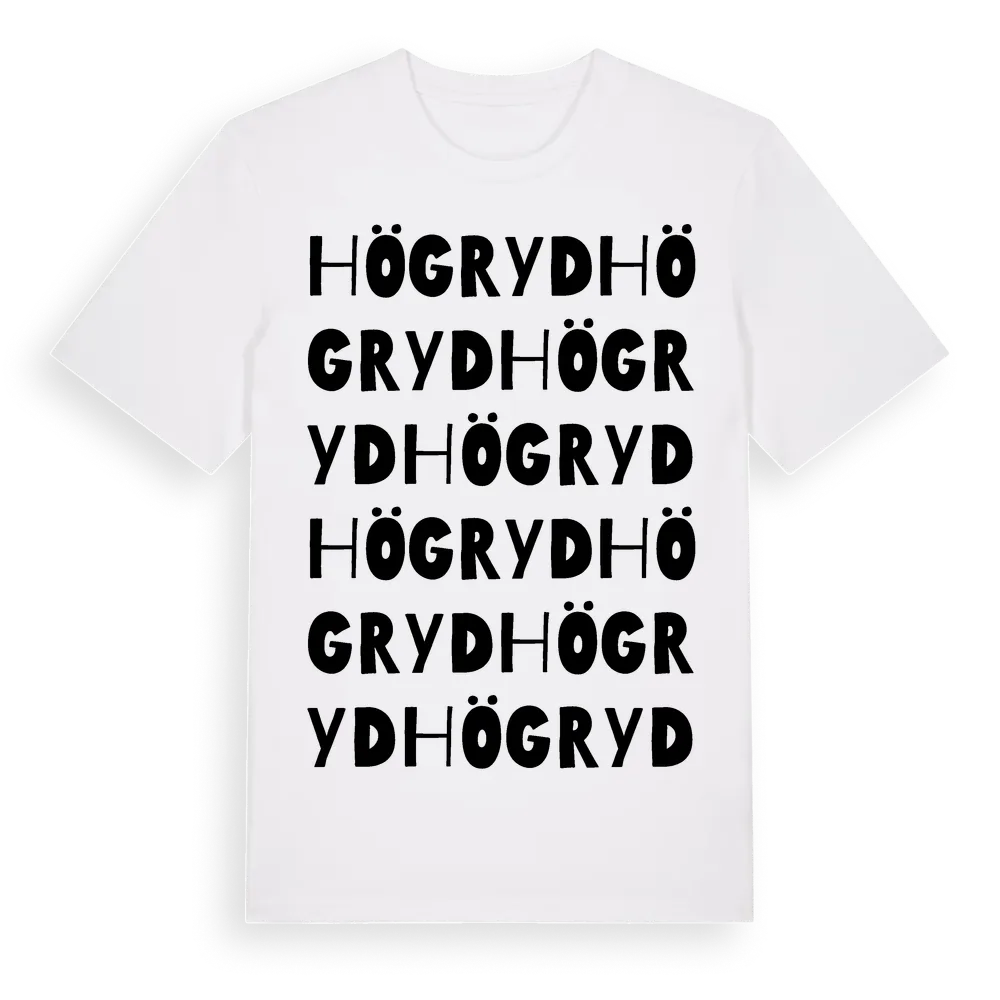 Högryd ordlek t-shirt är inspirerad av byn Högryd i Västra Götalands län, Sverige. Tröjan är designad för dig som har en speciell koppling till platsen – oavsett om du bor här, har rötterna här eller bara älskar Högryd.