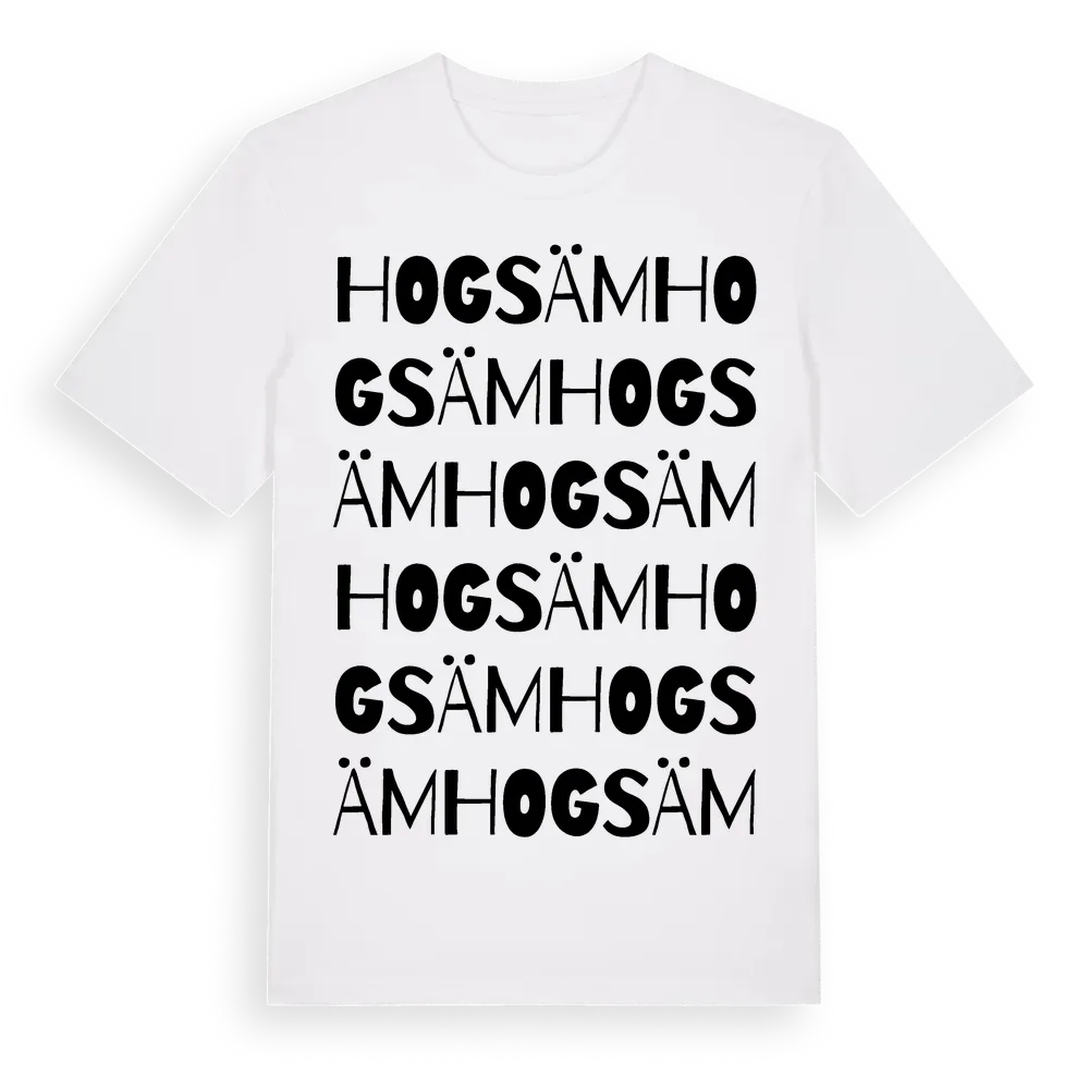 Hogsäm ordlek t-shirt är inspirerad av Hogsäm i Västra Götalands län, Sverige. Tröjan är designad för dig som har en speciell koppling till platsen – oavsett om du bor här, har rötterna här eller bara älskar Hogsäm.