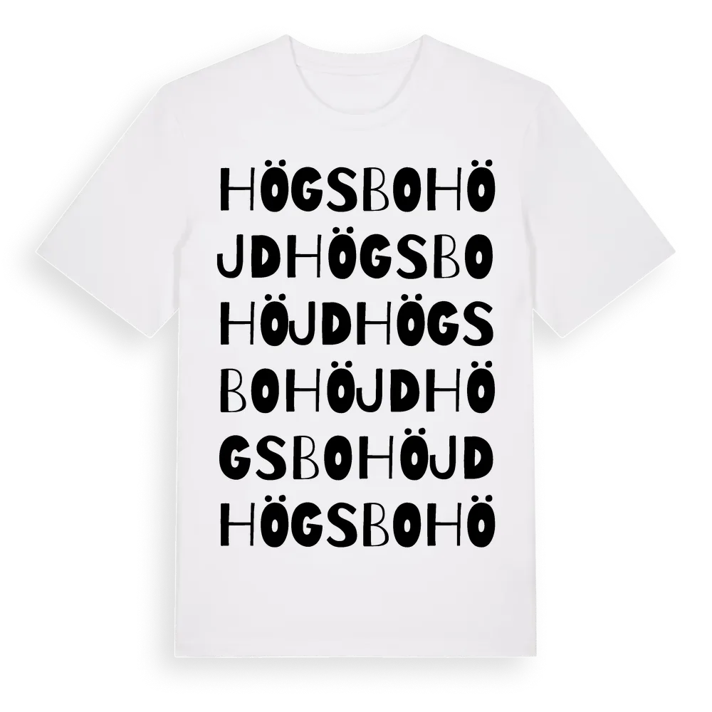 Högsbohöjd ordlek t-shirt är inspirerad av stadsdelen Högsbohöjd i Västra Götalands län, Sverige. Tröjan är designad för dig som har en speciell koppling till platsen – oavsett om du bor här, har rötterna här eller bara älskar Högsbohöjd.