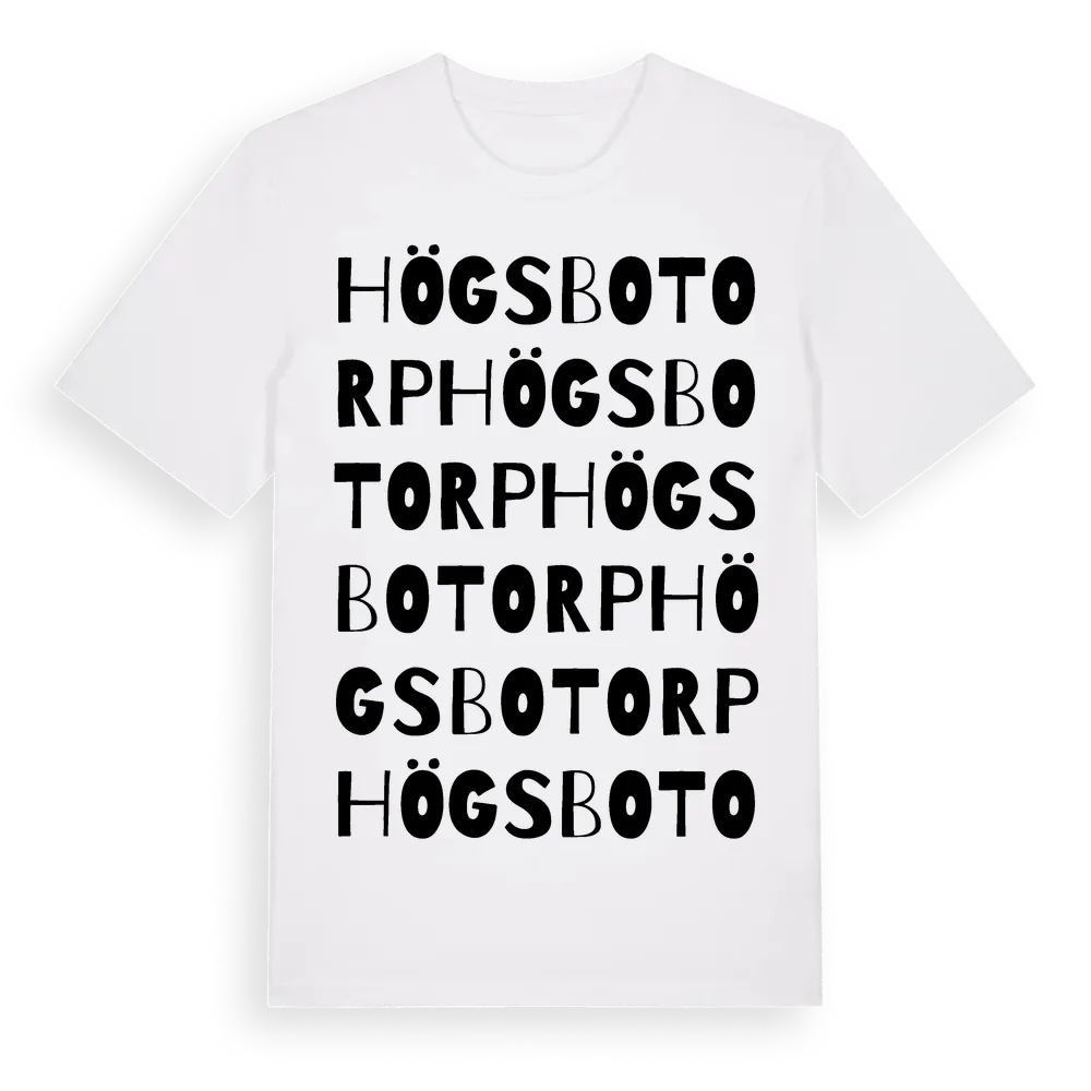 Högsbotorp ordlek t-shirt är inspirerad av Högsbotorp i Västra Götalands län, Sverige. Tröjan är designad för dig som har en speciell koppling till platsen – oavsett om du bor här, har rötterna här eller bara älskar Högsbotorp.