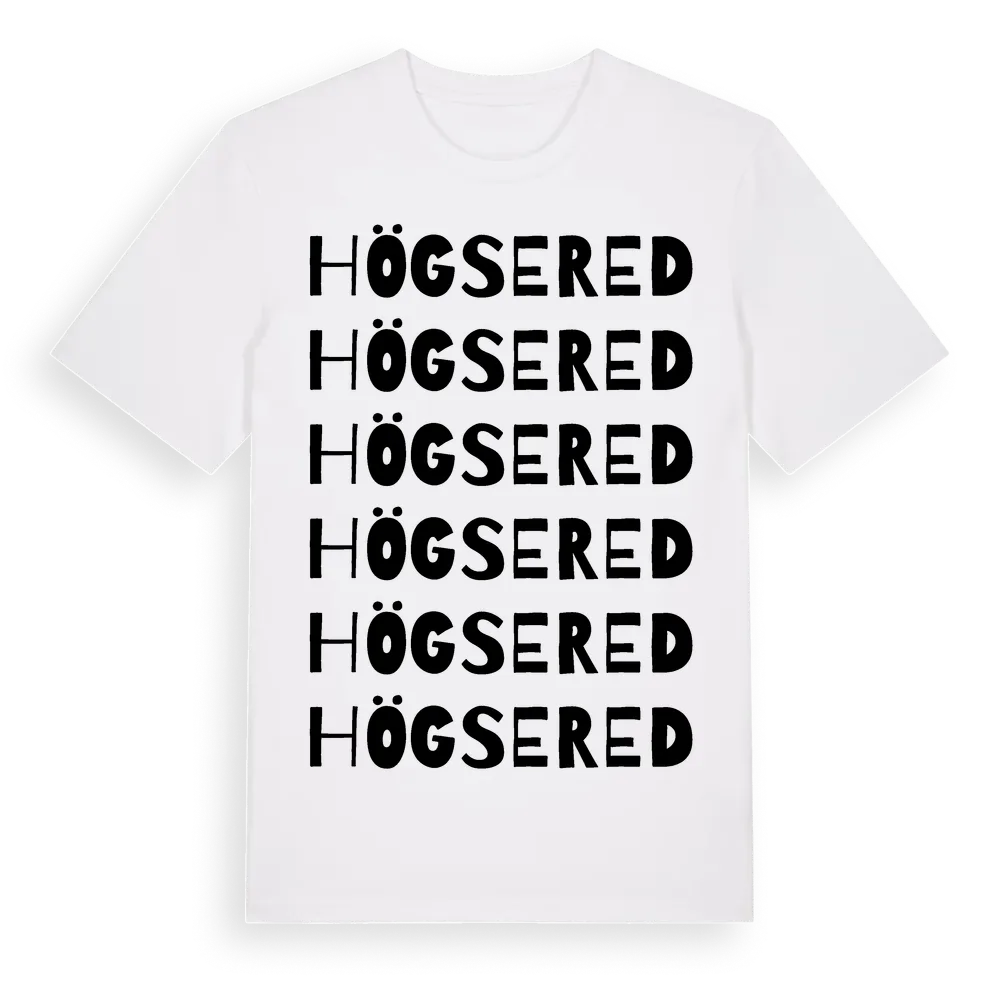 Högsered ordlek t-shirt är inspirerad av byn Högsered i Västra Götalands län, Sverige. Tröjan är designad för dig som har en speciell koppling till platsen – oavsett om du bor här, har rötterna här eller bara älskar Högsered.