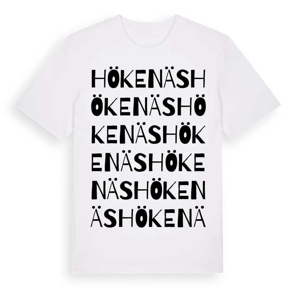 En ordlek byggd på Hökenäss namn. Subtilt och klurig – ett motiv som bara de som verkligen känner platsen fullt ut förstår. Premium bomull, unisex – från Hökenäs i Västra Götalands län.