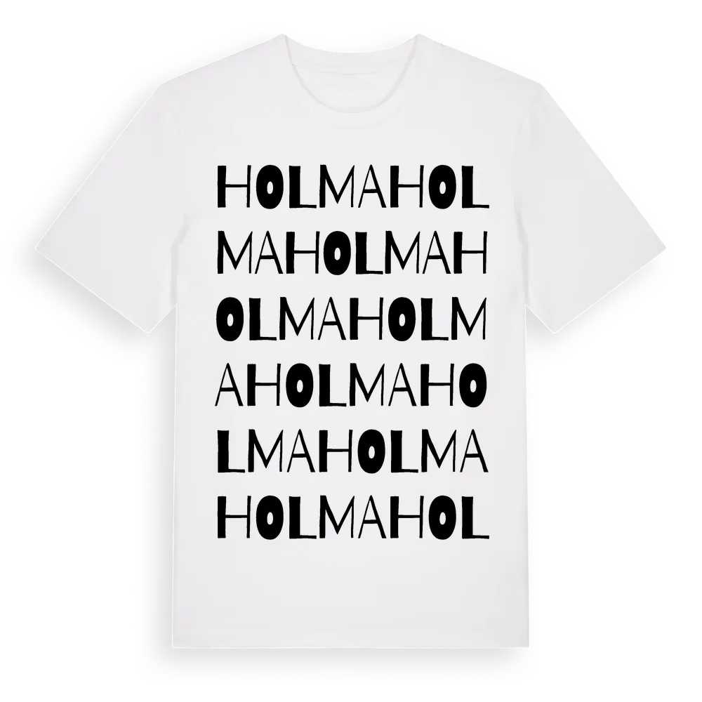 Holma ordlek t-shirt är inspirerad av Holma i Västra Götalands län, Sverige. Tröjan är designad för dig som har en speciell koppling till platsen – oavsett om du bor här, har rötterna här eller bara älskar Holma.