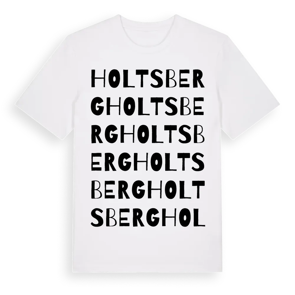Holtsberg ordlek t-shirt är inspirerad av Holtsberg i Västra Götalands län, Sverige. Tröjan är designad för dig som har en speciell koppling till platsen – oavsett om du bor här, har rötterna här eller bara älskar Holtsberg.