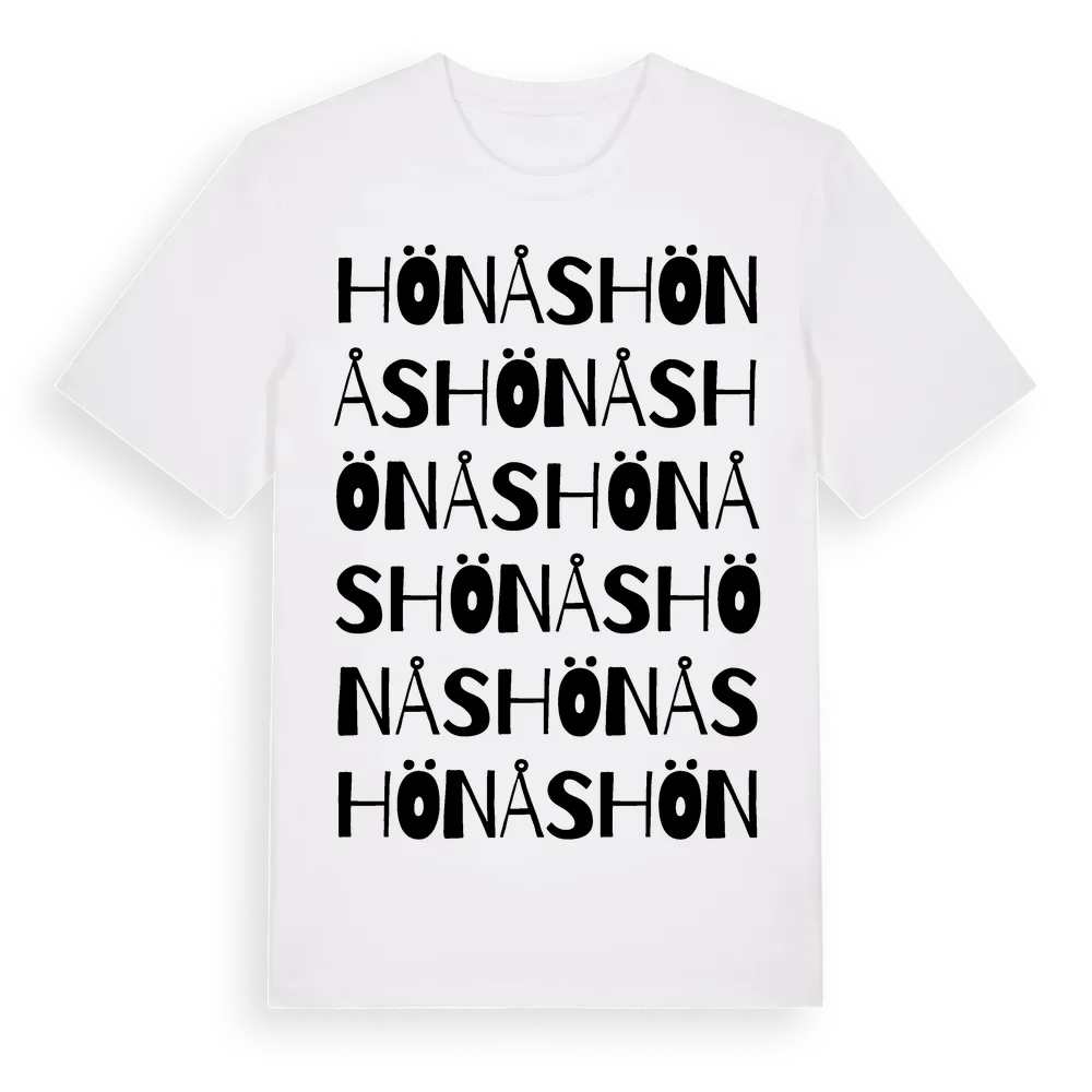 Hönås ordlek t-shirt är inspirerad av Hönås i Västra Götalands län, Sverige. Tröjan är designad för dig som har en speciell koppling till platsen – oavsett om du bor här, har rötterna här eller bara älskar Hönås.
