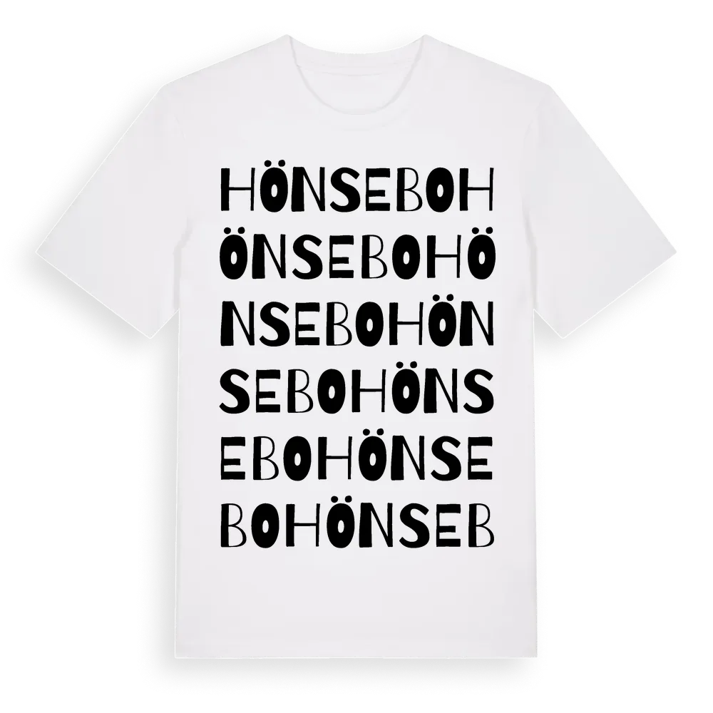 Hönsebo ordlek t-shirt är inspirerad av Hönsebo i Västra Götalands län, Sverige. Tröjan är designad för dig som har en speciell koppling till platsen – oavsett om du bor här, har rötterna här eller bara älskar Hönsebo.