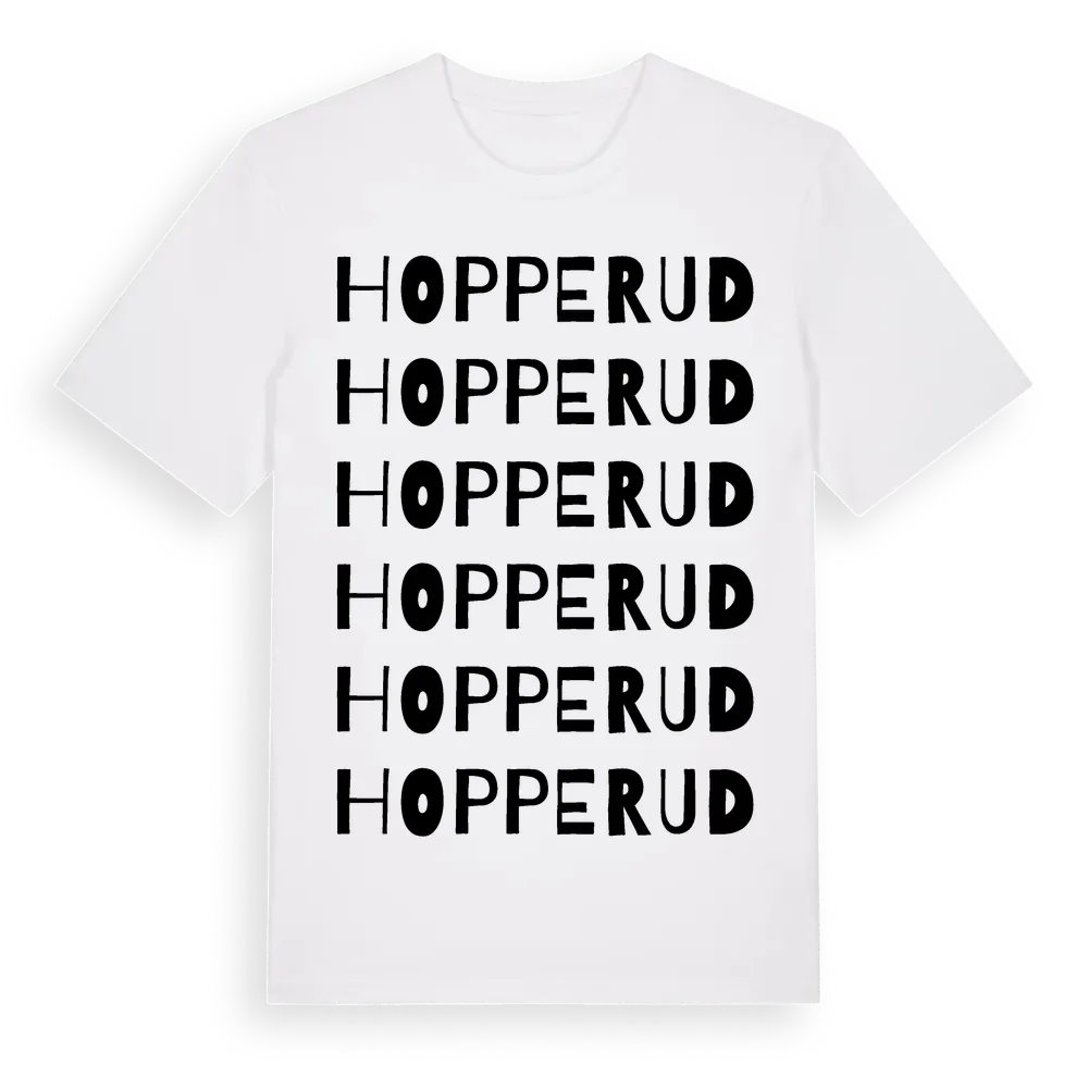 En ordlek byggd på Hopperuds namn. Subtilt och klurig – ett motiv som bara de som verkligen känner platsen fullt ut förstår. Premium bomull, unisex – från Hopperud i Västra Götalands län.
