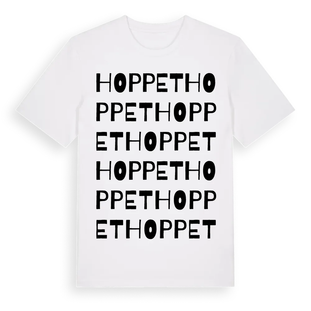 Hoppet ordlek t-shirt är inspirerad av Hoppet i Västra Götalands län, Sverige. Tröjan är designad för dig som har en speciell koppling till platsen – oavsett om du bor här, har rötterna här eller bara älskar Hoppet.