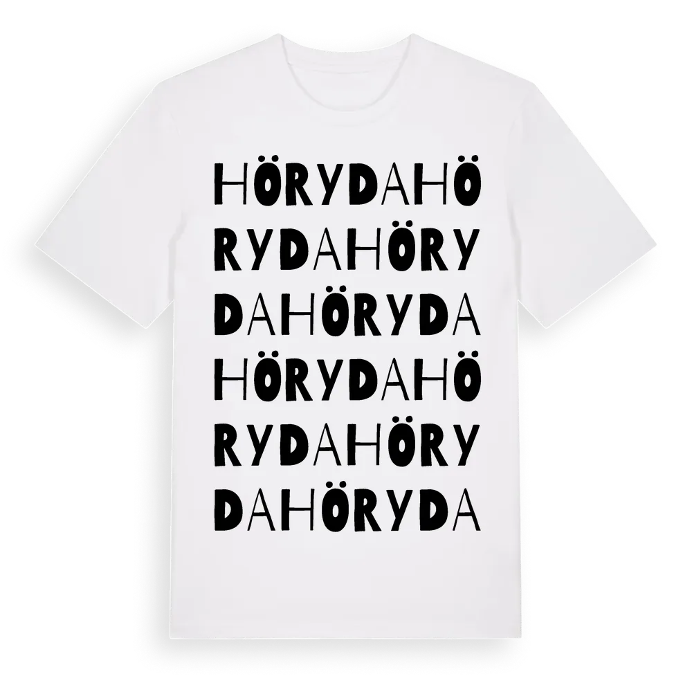 Höryda ordlek t-shirt är inspirerad av Höryda i Västra Götalands län, Sverige. Tröjan är designad för dig som har en speciell koppling till platsen – oavsett om du bor här, har rötterna här eller bara älskar Höryda.
