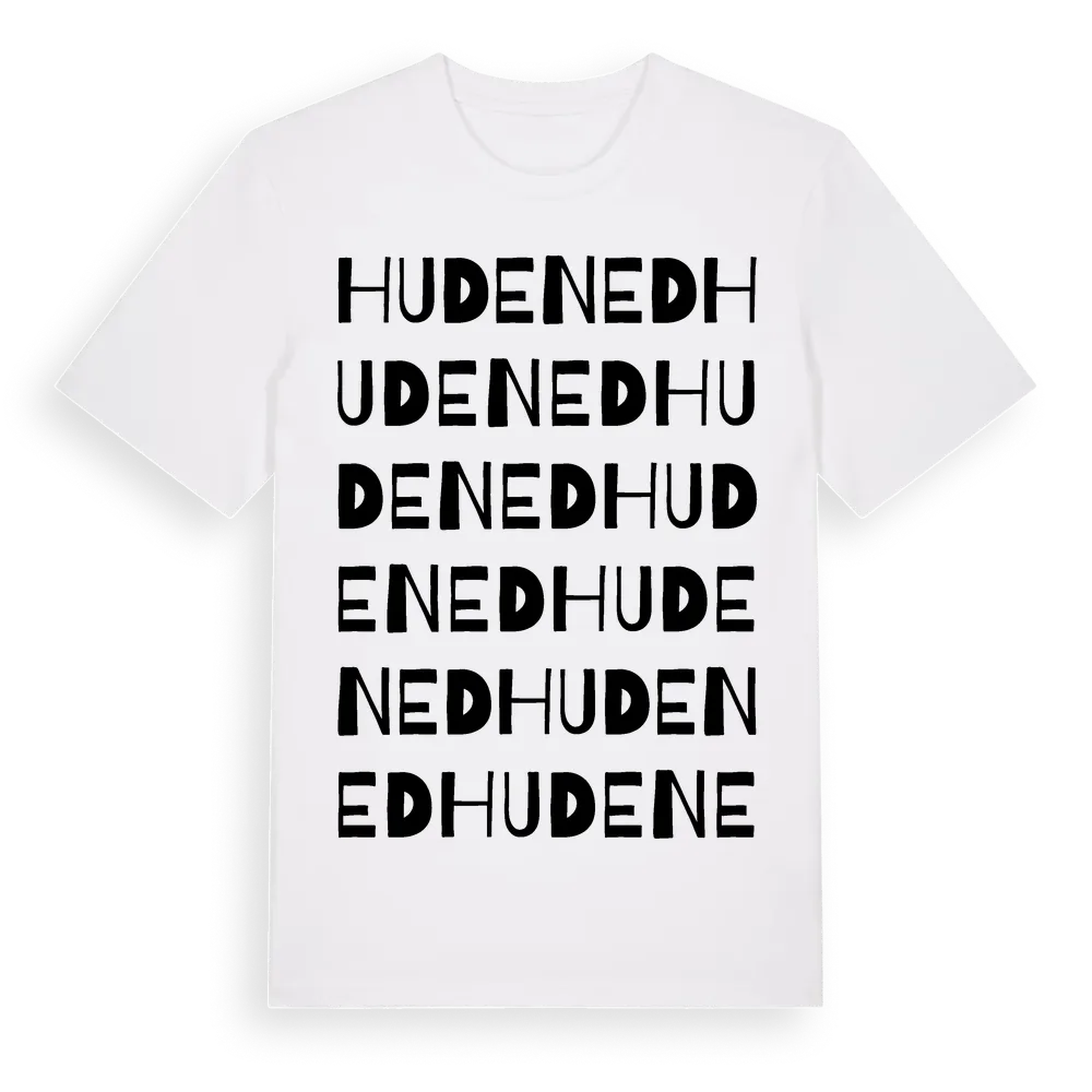 Hudened ordlek t-shirt är inspirerad av byn Hudened i Västra Götalands län, Sverige. Tröjan är designad för dig som har en speciell koppling till platsen – oavsett om du bor här, har rötterna här eller bara älskar Hudened.