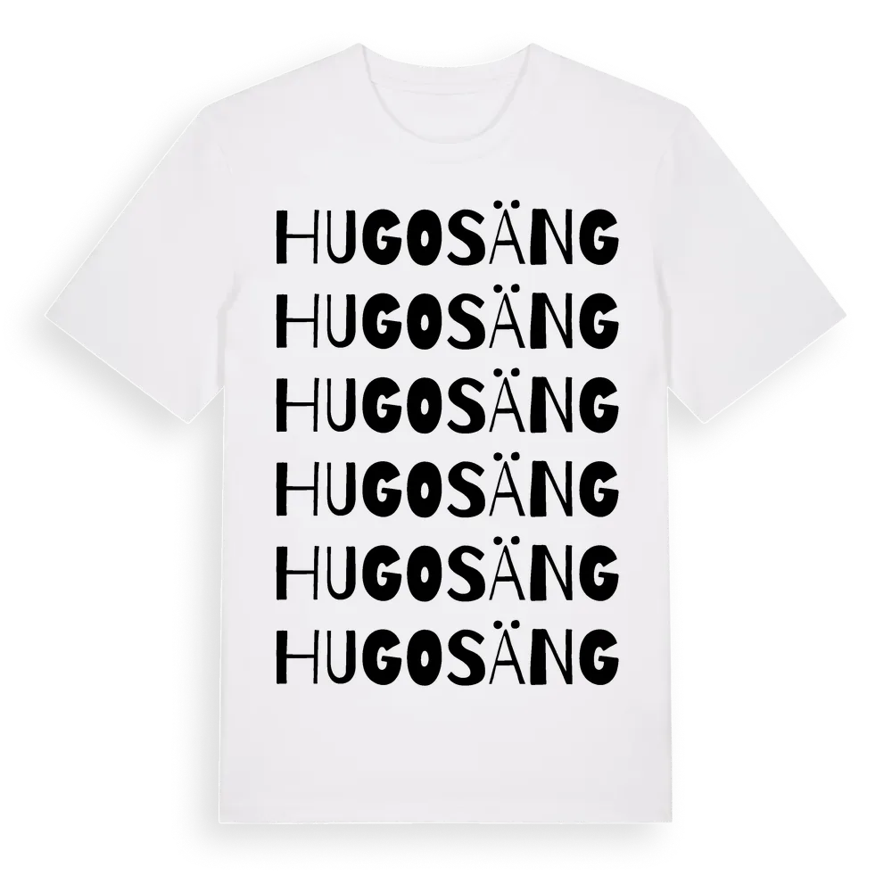 Hugos Äng ordlek t-shirt är inspirerad av Hugos Äng i Västra Götalands län, Sverige. Tröjan är designad för dig som har en speciell koppling till platsen – oavsett om du bor här, har rötterna här eller bara älskar Hugos Äng.