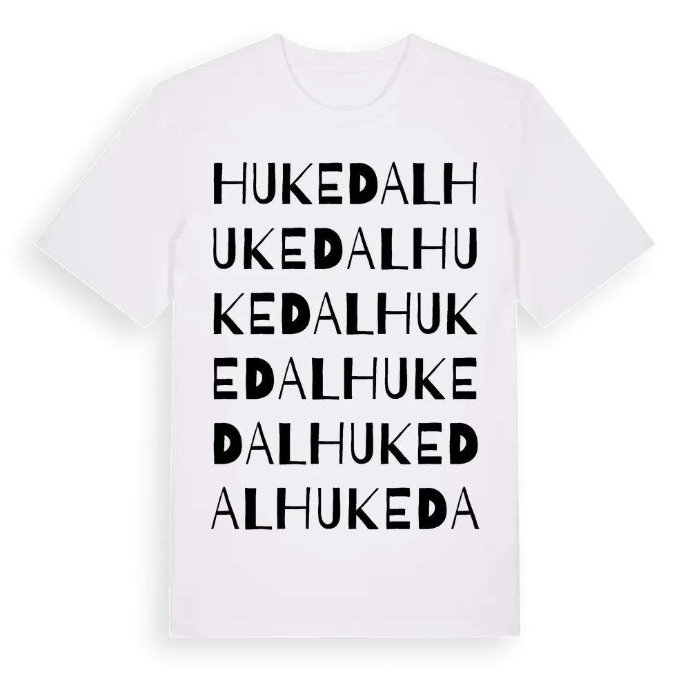 Hukedal ordlek t-shirt är inspirerad av Hukedal i Västra Götalands län, Sverige. Tröjan är designad för dig som har en speciell koppling till platsen – oavsett om du bor här, har rötterna här eller bara älskar Hukedal.