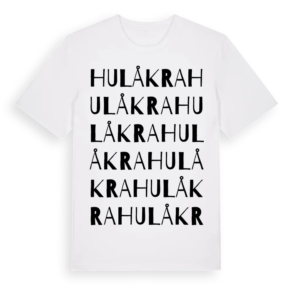 Hulåkra ordlek t-shirt är inspirerad av byn Hulåkra i Västra Götalands län, Sverige. Tröjan är designad för dig som har en speciell koppling till platsen – oavsett om du bor här, har rötterna här eller bara älskar Hulåkra.