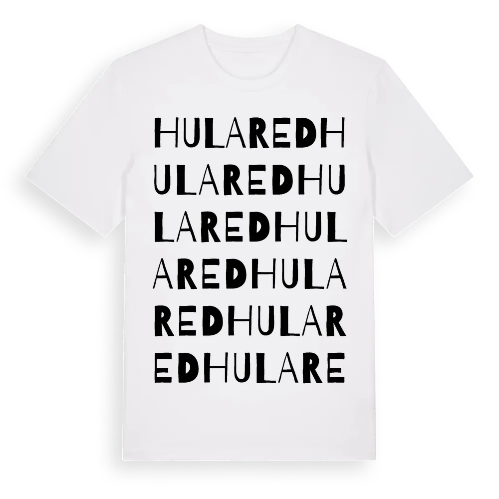Hulared ordlek t-shirt är inspirerad av byn Hulared i Västra Götalands län, Sverige. Tröjan är designad för dig som har en speciell koppling till platsen – oavsett om du bor här, har rötterna här eller bara älskar Hulared.