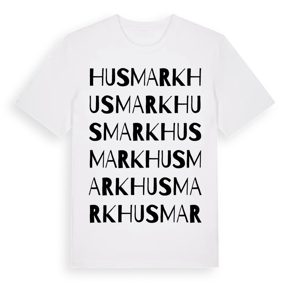 Husmark ordlek t-shirt är inspirerad av Husmark i Västra Götalands län, Sverige. Tröjan är designad för dig som har en speciell koppling till platsen – oavsett om du bor här, har rötterna här eller bara älskar Husmark.
