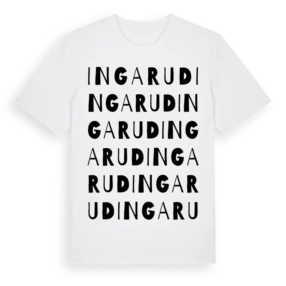 Ingarud ordlek t-shirt är inspirerad av byn Ingarud i Västra Götalands län, Sverige. Tröjan är designad för dig som har en speciell koppling till platsen – oavsett om du bor här, har rötterna här eller bara älskar Ingarud.