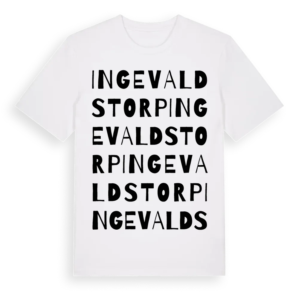 Ingevaldstorp ordlek t-shirt är inspirerad av Ingevaldstorp i Västra Götalands län, Sverige. Tröjan är designad för dig som har en speciell koppling till platsen – oavsett om du bor här, har rötterna här eller bara älskar Ingevaldstorp.