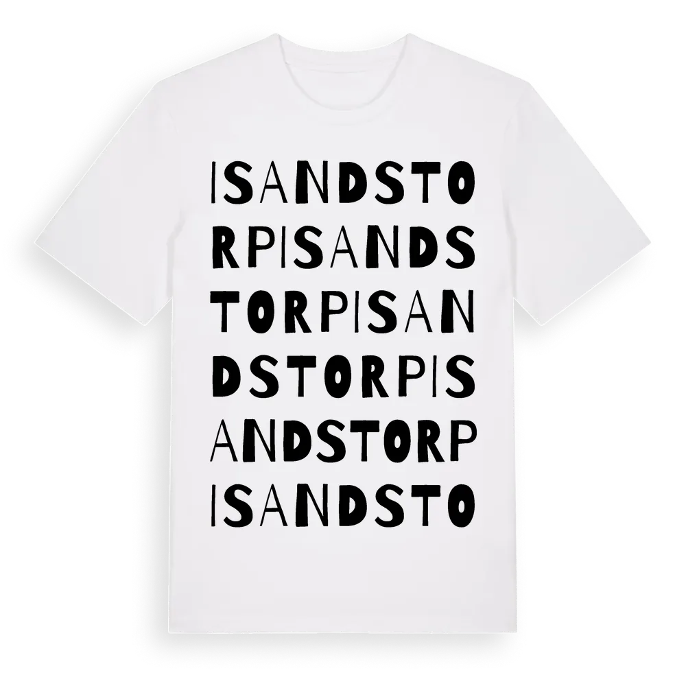 Isandstorp ordlek t-shirt är inspirerad av Isandstorp i Västra Götalands län, Sverige. Tröjan är designad för dig som har en speciell koppling till platsen – oavsett om du bor här, har rötterna här eller bara älskar Isandstorp.