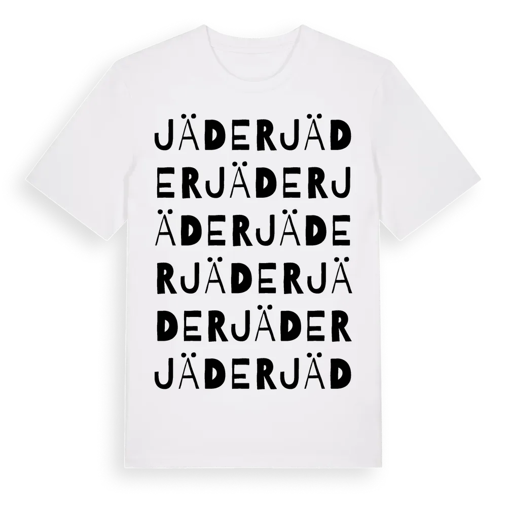 Jäder ordlek t-shirt är inspirerad av byn Jäder i Västra Götalands län, Sverige. Tröjan är designad för dig som har en speciell koppling till platsen – oavsett om du bor här, har rötterna här eller bara älskar Jäder.