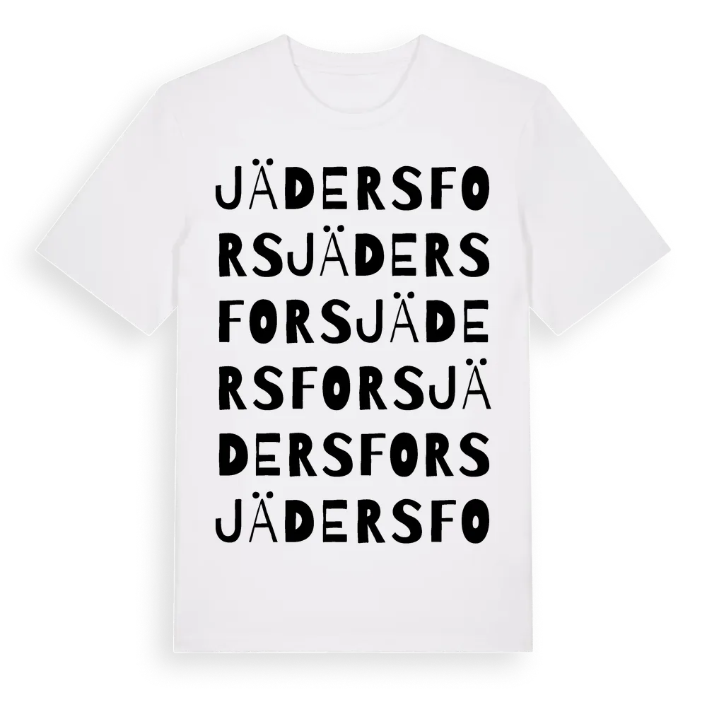 Jädersfors ordlek t-shirt är inspirerad av Jädersfors i Västra Götalands län, Sverige. Tröjan är designad för dig som har en speciell koppling till platsen – oavsett om du bor här, har rötterna här eller bara älskar Jädersfors.