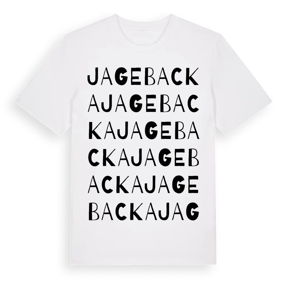 Jagebacka ordlek t-shirt är inspirerad av byn Jagebacka i Västra Götalands län, Sverige. Tröjan är designad för dig som har en speciell koppling till platsen – oavsett om du bor här, har rötterna här eller bara älskar Jagebacka.