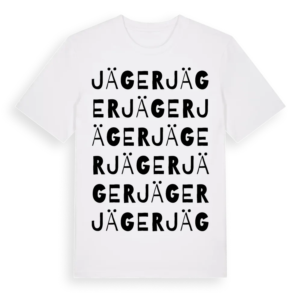 Jäger ordlek t-shirt är inspirerad av Jäger i Västra Götalands län, Sverige. Tröjan är designad för dig som har en speciell koppling till platsen – oavsett om du bor här, har rötterna här eller bara älskar Jäger.