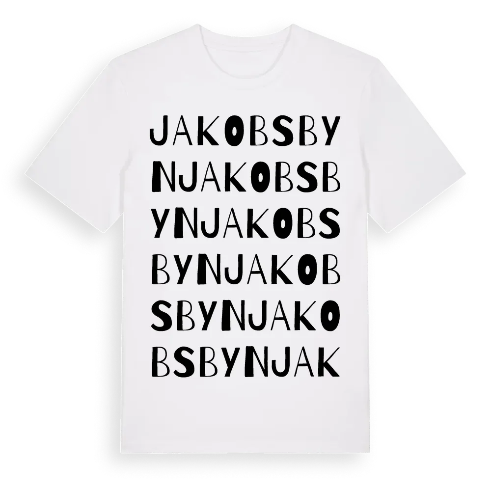 Jakobsbyn ordlek t-shirt är inspirerad av byn Jakobsbyn i Västra Götalands län, Sverige. Tröjan är designad för dig som har en speciell koppling till platsen – oavsett om du bor här, har rötterna här eller bara älskar Jakobsbyn.