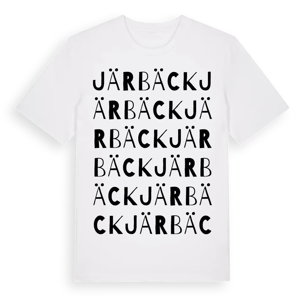 Järbäck ordlek t-shirt är inspirerad av Järbäck i Västra Götalands län, Sverige. Tröjan är designad för dig som har en speciell koppling till platsen – oavsett om du bor här, har rötterna här eller bara älskar Järbäck.