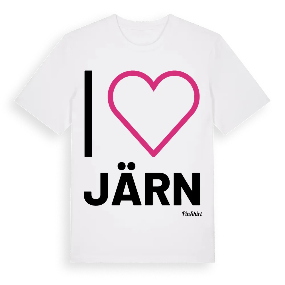 Det klassiska "I ❤ Järn"-motivet i stort format som täcker hela bröstet. För dig som vill visa kärleken till Järn på riktigt. Premium bomull, unisex – från byn Järn i Västra Götalands län.