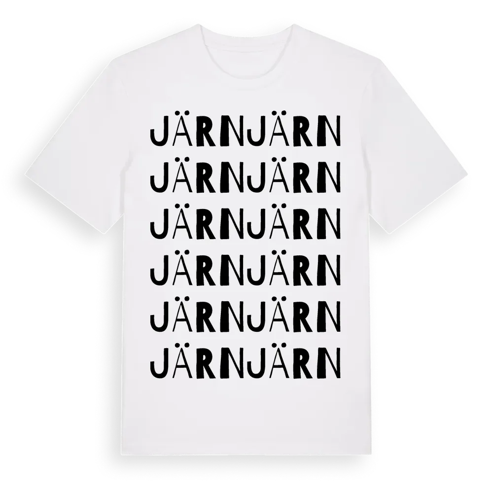 Järn ordlek t-shirt är inspirerad av byn Järn i Västra Götalands län, Sverige. Tröjan är designad för dig som har en speciell koppling till platsen – oavsett om du bor här, har rötterna här eller bara älskar Järn.