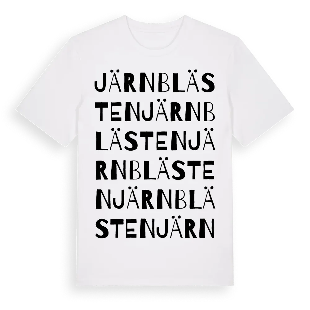 Järnblästen ordlek t-shirt är inspirerad av Järnblästen i Västra Götalands län, Sverige. Tröjan är designad för dig som har en speciell koppling till platsen – oavsett om du bor här, har rötterna här eller bara älskar Järnblästen.