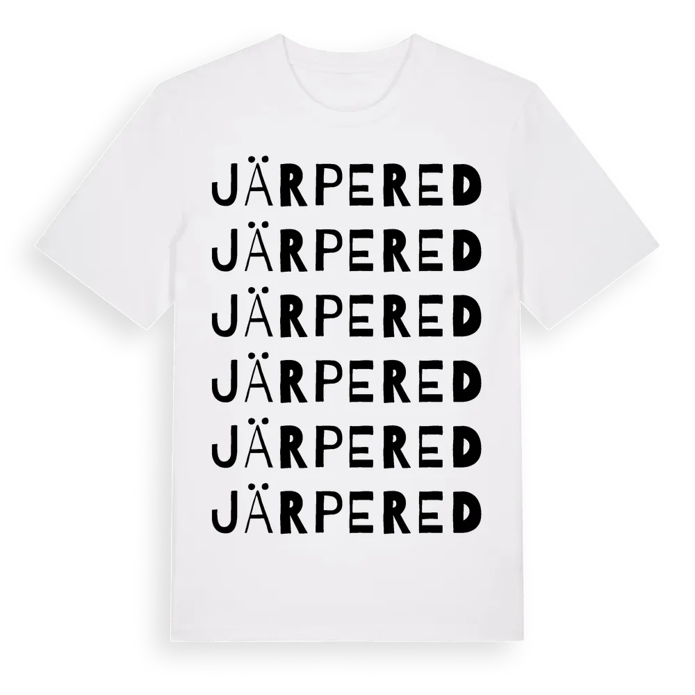 Järpered ordlek t-shirt är inspirerad av Järpered i Västra Götalands län, Sverige. Tröjan är designad för dig som har en speciell koppling till platsen – oavsett om du bor här, har rötterna här eller bara älskar Järpered.