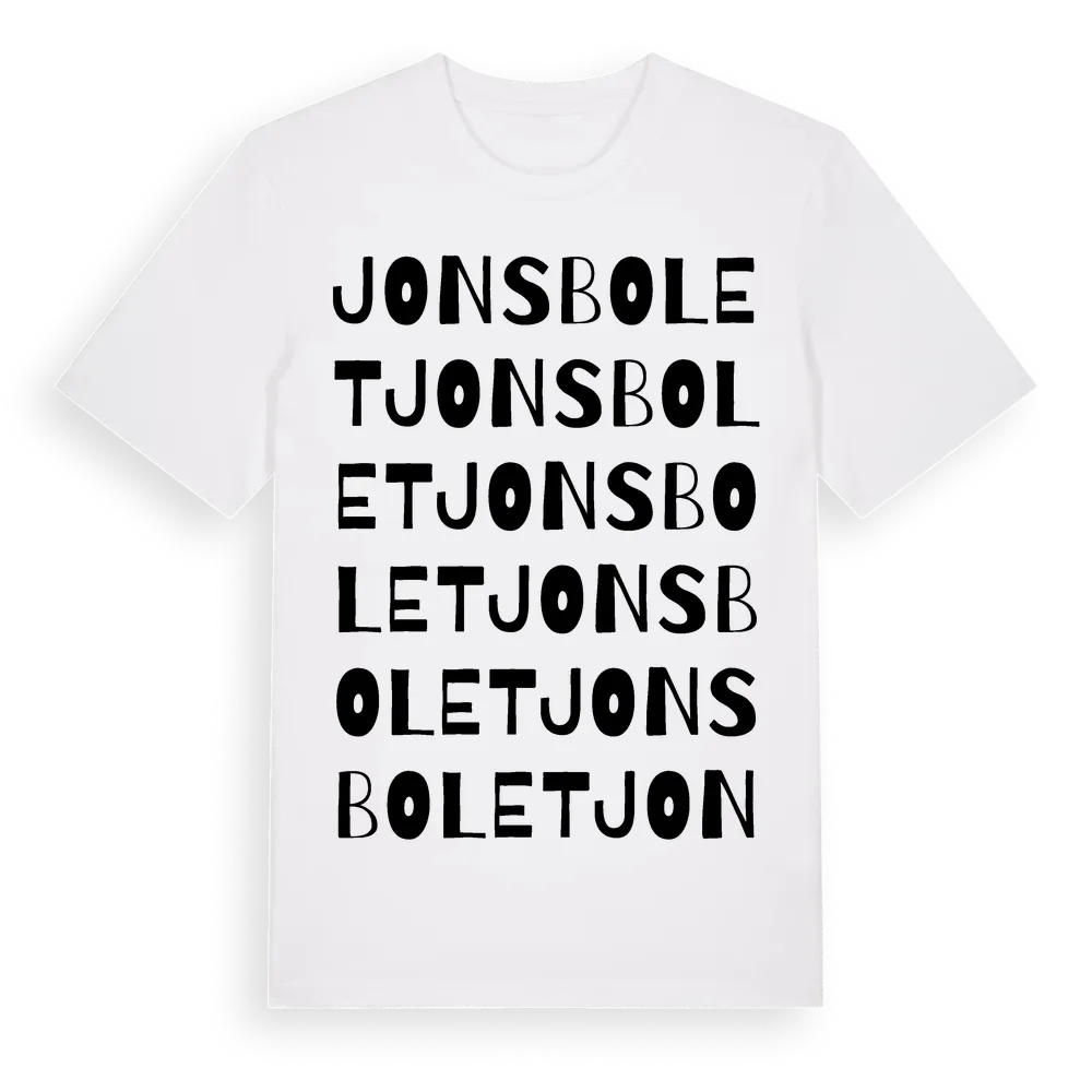 Jonsbolet ordlek t-shirt är inspirerad av Jonsbolet i Västra Götalands län, Sverige. Tröjan är designad för dig som har en speciell koppling till platsen – oavsett om du bor här, har rötterna här eller bara älskar Jonsbolet.