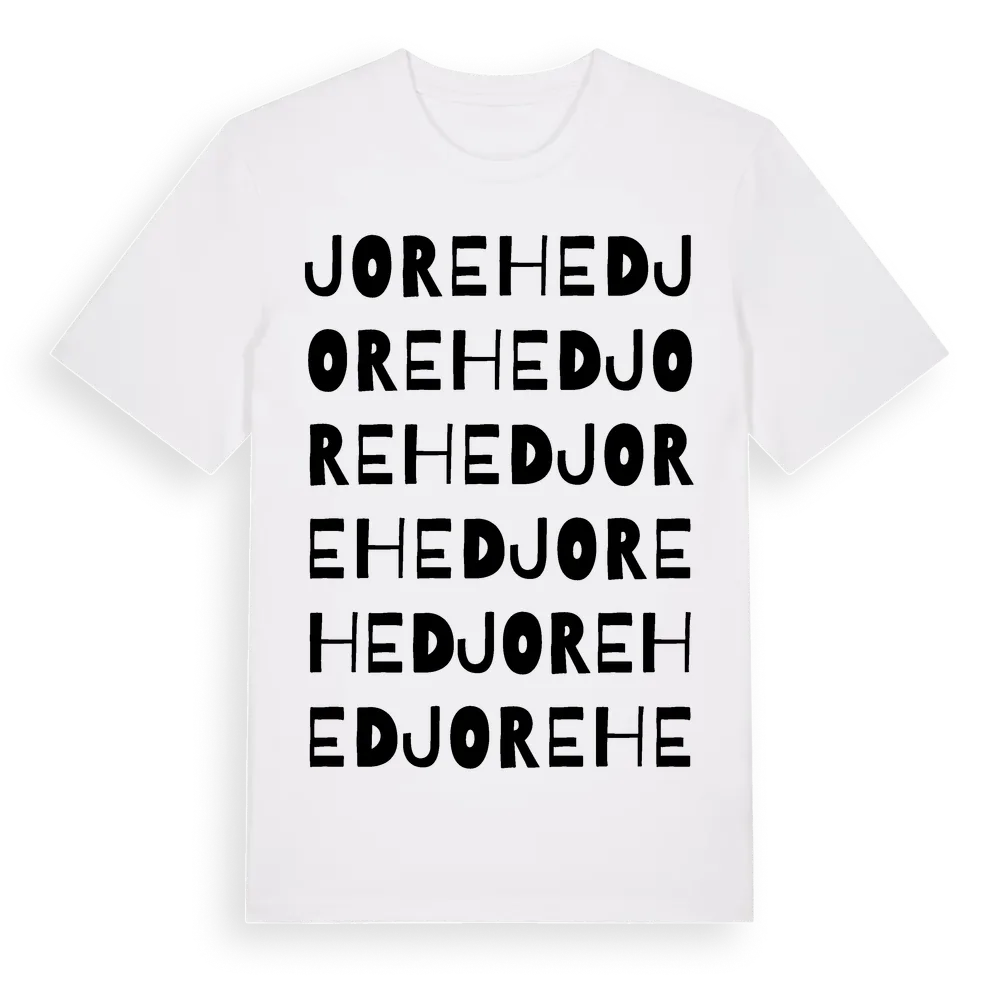 Jorehed ordlek t-shirt är inspirerad av Jorehed i Västra Götalands län, Sverige. Tröjan är designad för dig som har en speciell koppling till platsen – oavsett om du bor här, har rötterna här eller bara älskar Jorehed.