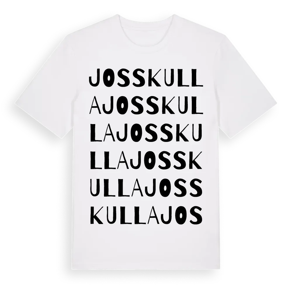 Josskulla ordlek t-shirt är inspirerad av Josskulla i Västra Götalands län, Sverige. Tröjan är designad för dig som har en speciell koppling till platsen – oavsett om du bor här, har rötterna här eller bara älskar Josskulla.
