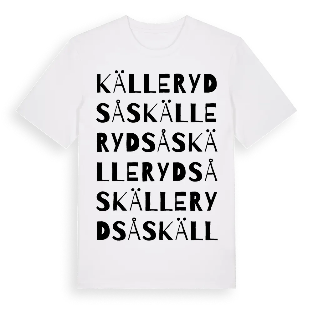 Källerydsås ordlek t-shirt är inspirerad av Källerydsås i Västra Götalands län, Sverige. Tröjan är designad för dig som har en speciell koppling till platsen – oavsett om du bor här, har rötterna här eller bara älskar Källerydsås.