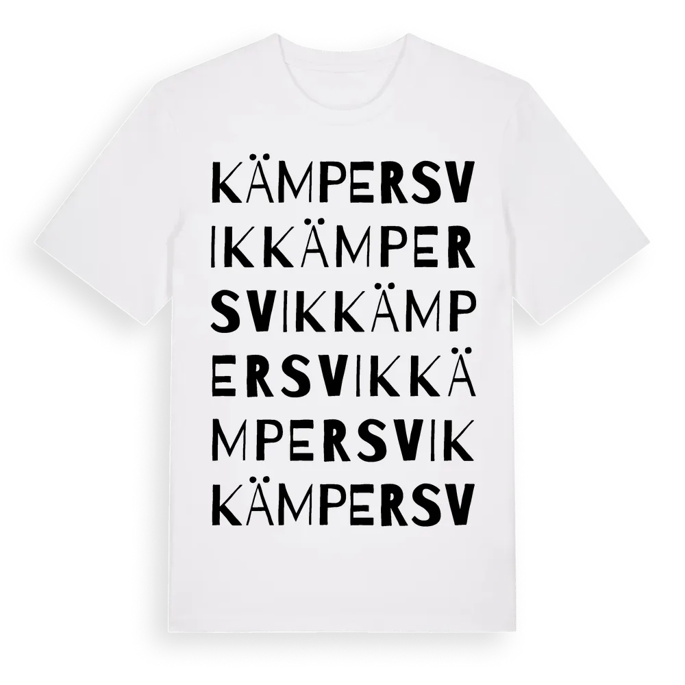 Kämpersvik ordlek t-shirt är inspirerad av byn Kämpersvik i Västra Götalands län, Sverige. Tröjan är designad för dig som har en speciell koppling till platsen – oavsett om du bor här, har rötterna här eller bara älskar Kämpersvik.