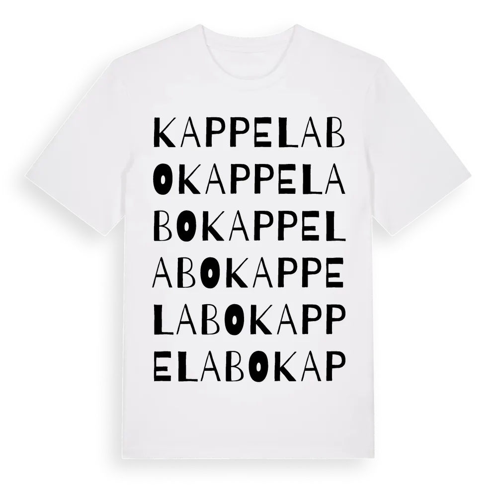 Kappelabo ordlek t-shirt är inspirerad av byn Kappelabo i Västra Götalands län, Sverige. Tröjan är designad för dig som har en speciell koppling till platsen – oavsett om du bor här, har rötterna här eller bara älskar Kappelabo.