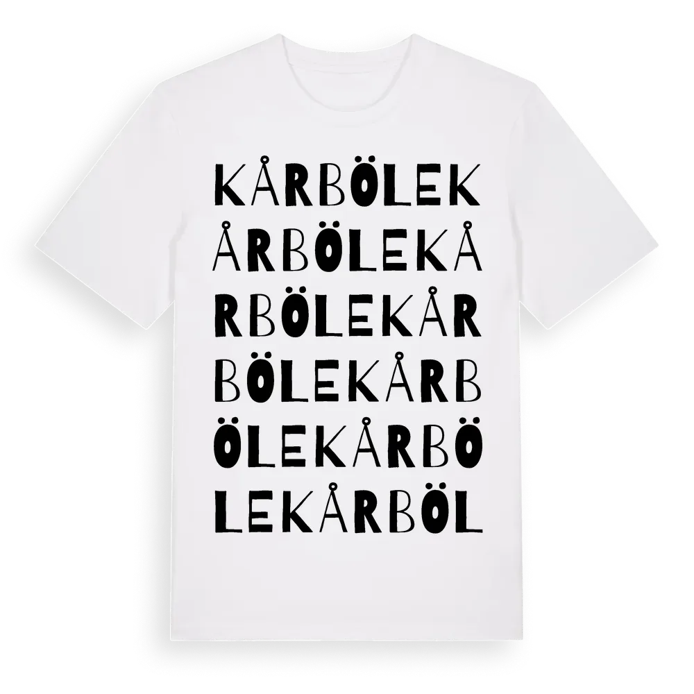 Kårböle ordlek t-shirt är inspirerad av byn Kårböle i Västra Götalands län, Sverige. Tröjan är designad för dig som har en speciell koppling till platsen – oavsett om du bor här, har rötterna här eller bara älskar Kårböle.