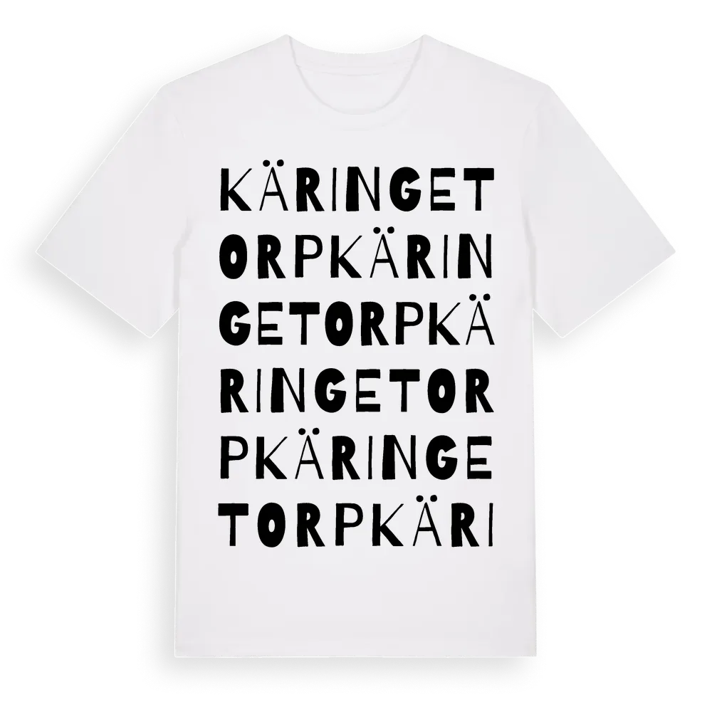 Käringetorp ordlek t-shirt är inspirerad av Käringetorp i Västra Götalands län, Sverige. Tröjan är designad för dig som har en speciell koppling till platsen – oavsett om du bor här, har rötterna här eller bara älskar Käringetorp.