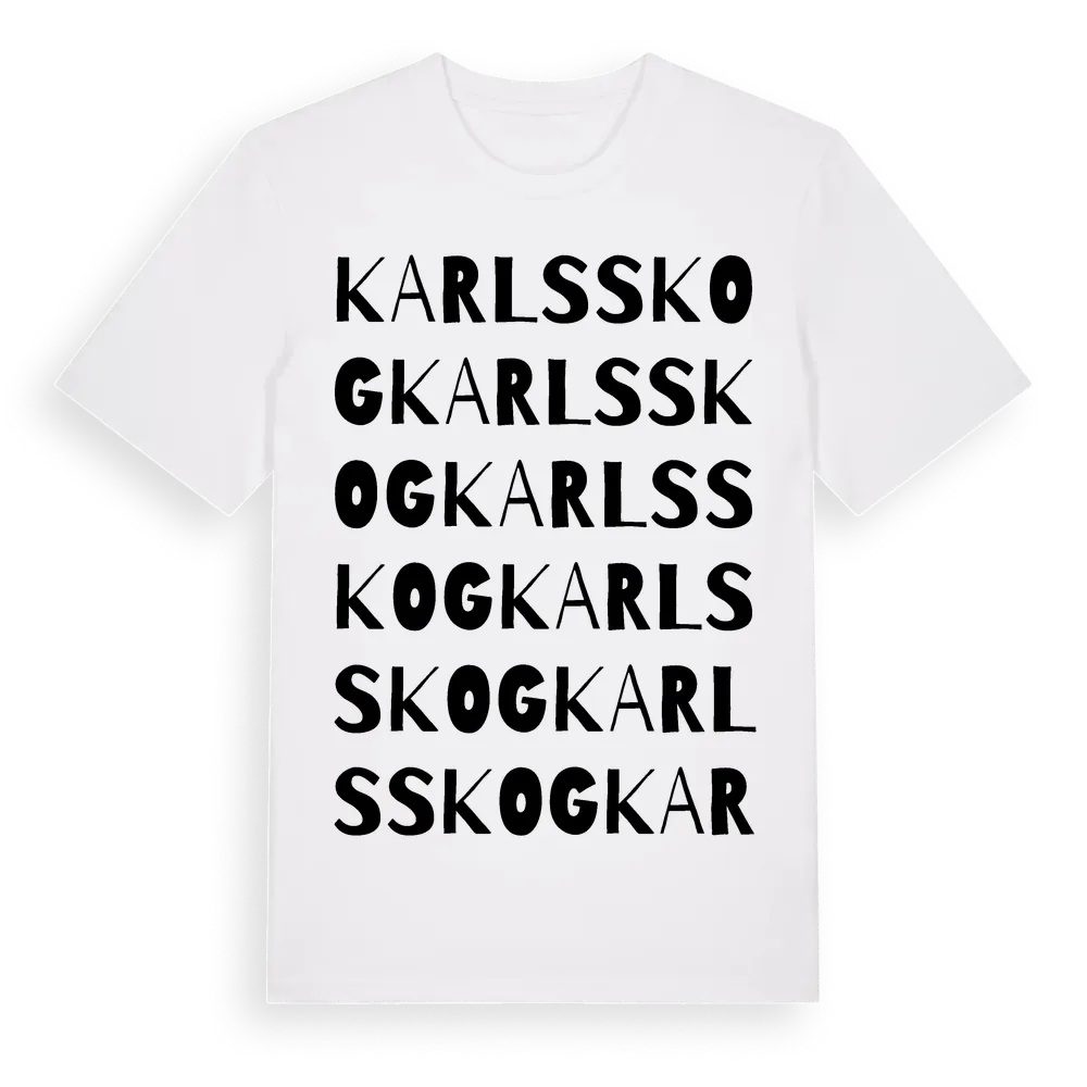 Karlsskog ordlek t-shirt är inspirerad av Karlsskog i Västra Götalands län, Sverige. Tröjan är designad för dig som har en speciell koppling till platsen – oavsett om du bor här, har rötterna här eller bara älskar Karlsskog.