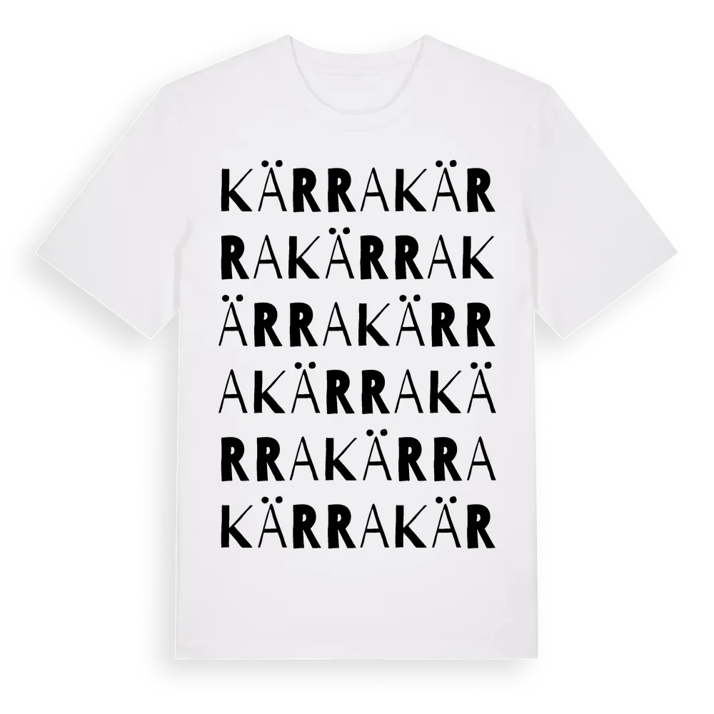 Kärra ordlek t-shirt är inspirerad av stadsdelen Kärra i Västra Götalands län, Sverige. Tröjan är designad för dig som har en speciell koppling till platsen – oavsett om du bor här, har rötterna här eller bara älskar Kärra.