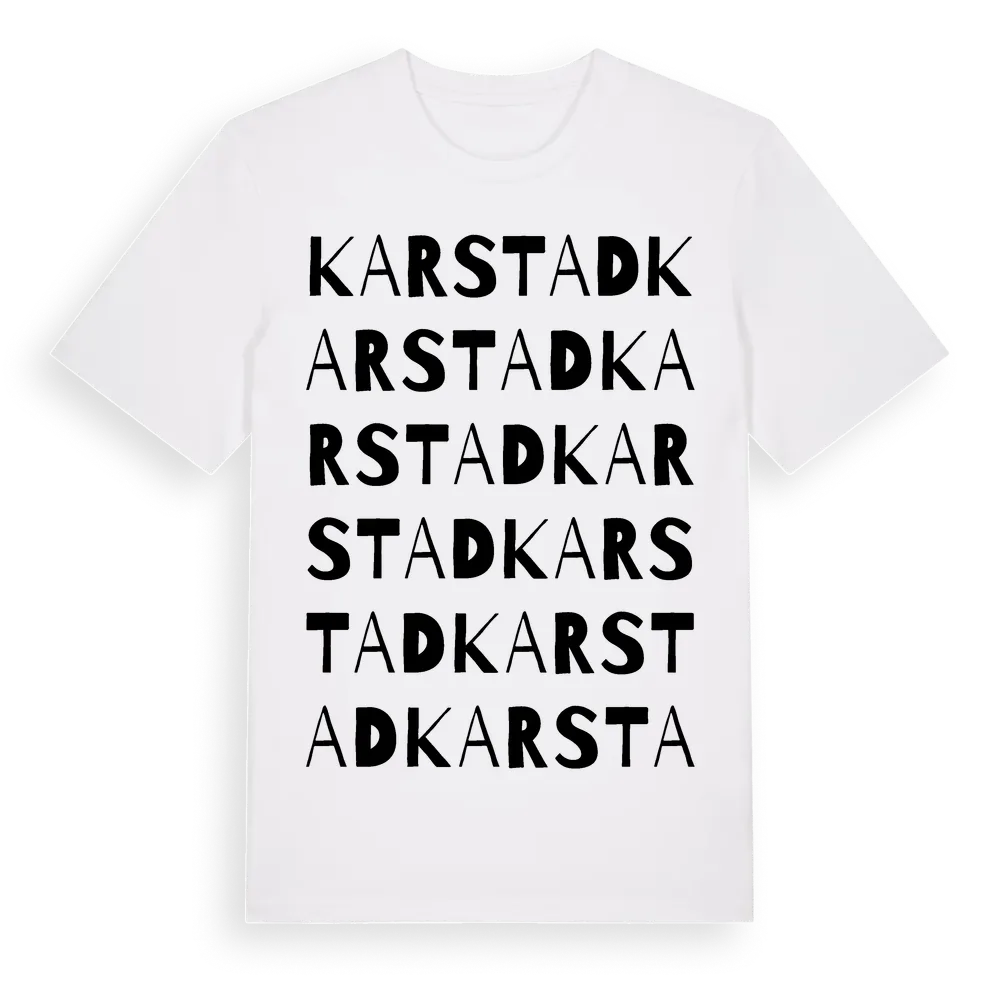 Karstad ordlek t-shirt är inspirerad av Karstad i Västra Götalands län, Sverige. Tröjan är designad för dig som har en speciell koppling till platsen – oavsett om du bor här, har rötterna här eller bara älskar Karstad.